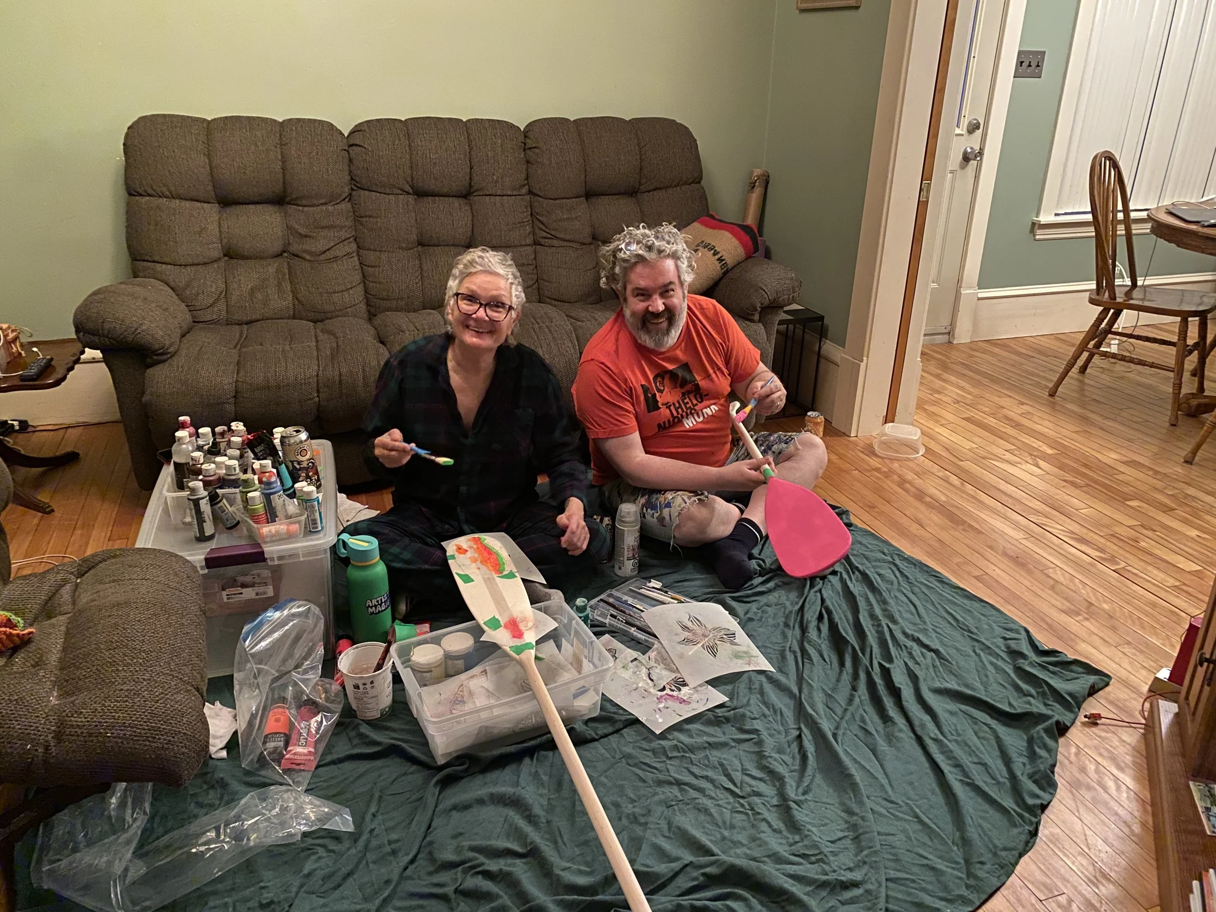 We stayed with my friend Michelle, which meant beer, Heated Rivalry on in the background, and paint on the floor until three in the morning. Honestly, ideal conditions.